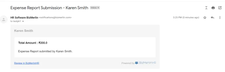 2. So when a user creates an expense report, the Email notification of submission goes to the user: