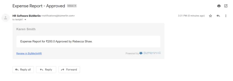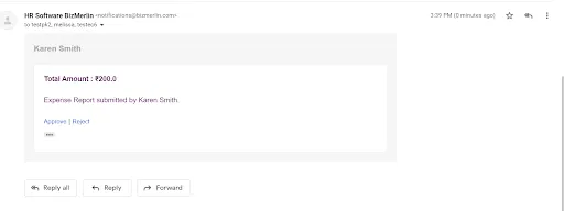 6. Once all the approvers approve the expense report, the submitter receives an email notification that the report is approved.