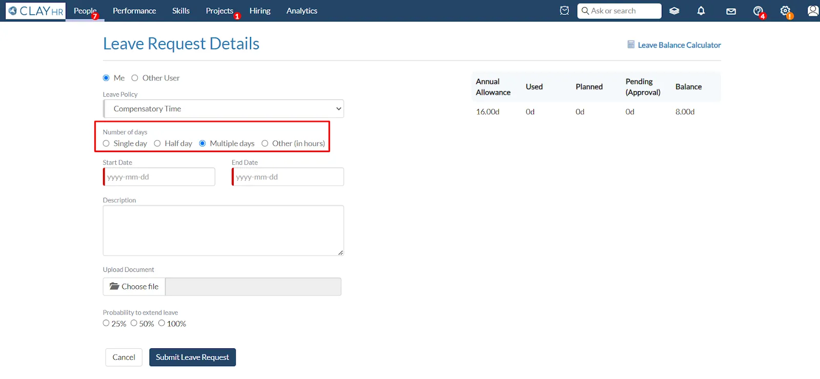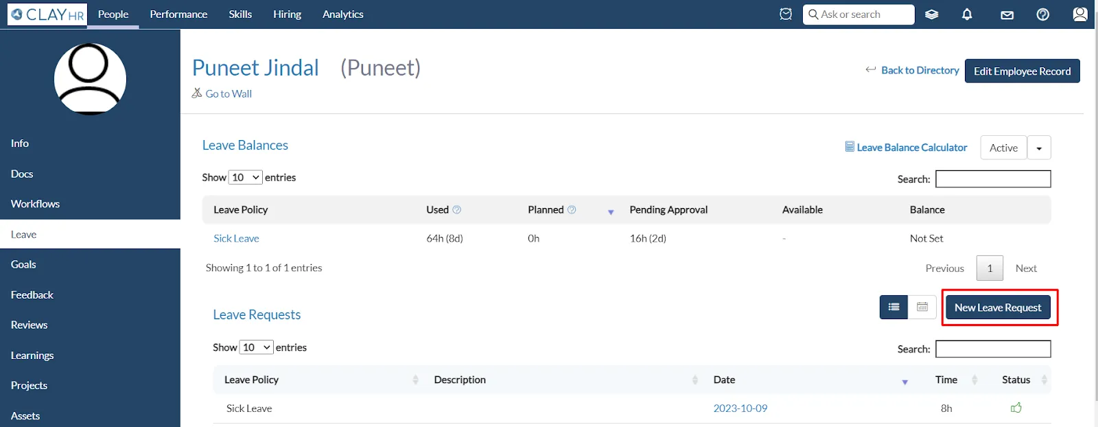 - Go to the “People” menu and select ‘My Leave Requests’.