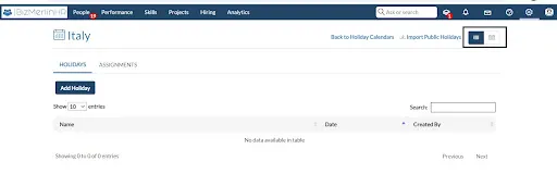 10. We have the choices to get the holidays in the list view as well as the calendar view, by clicking on the list or calendar icons in the top right corner of the page.