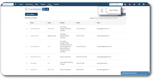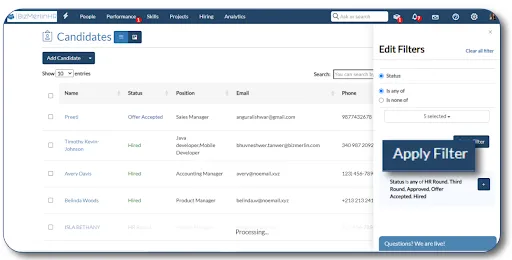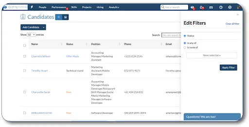 - After entering the filter name you will see the Status filter button will appear on top of the Candidate home page.