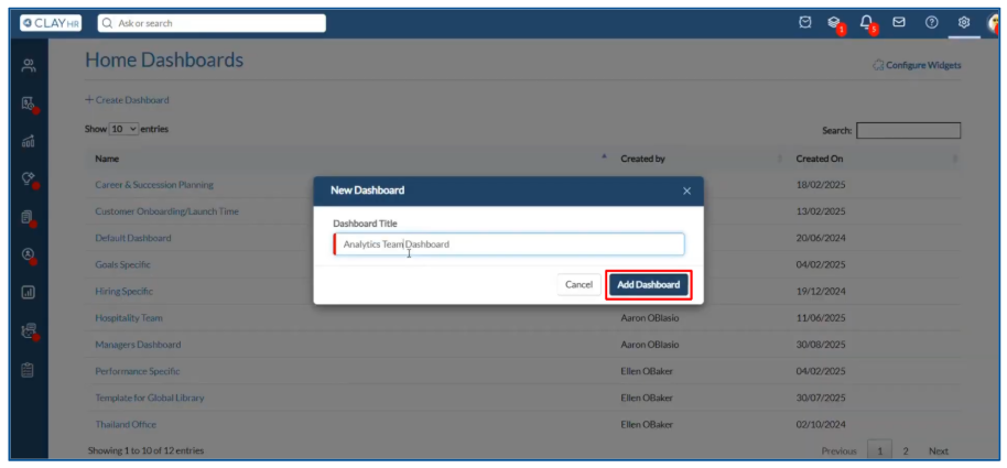 - Enter the name of your dashboard then click the “Add Dashboard” button. Your dashboard will be created successfully.