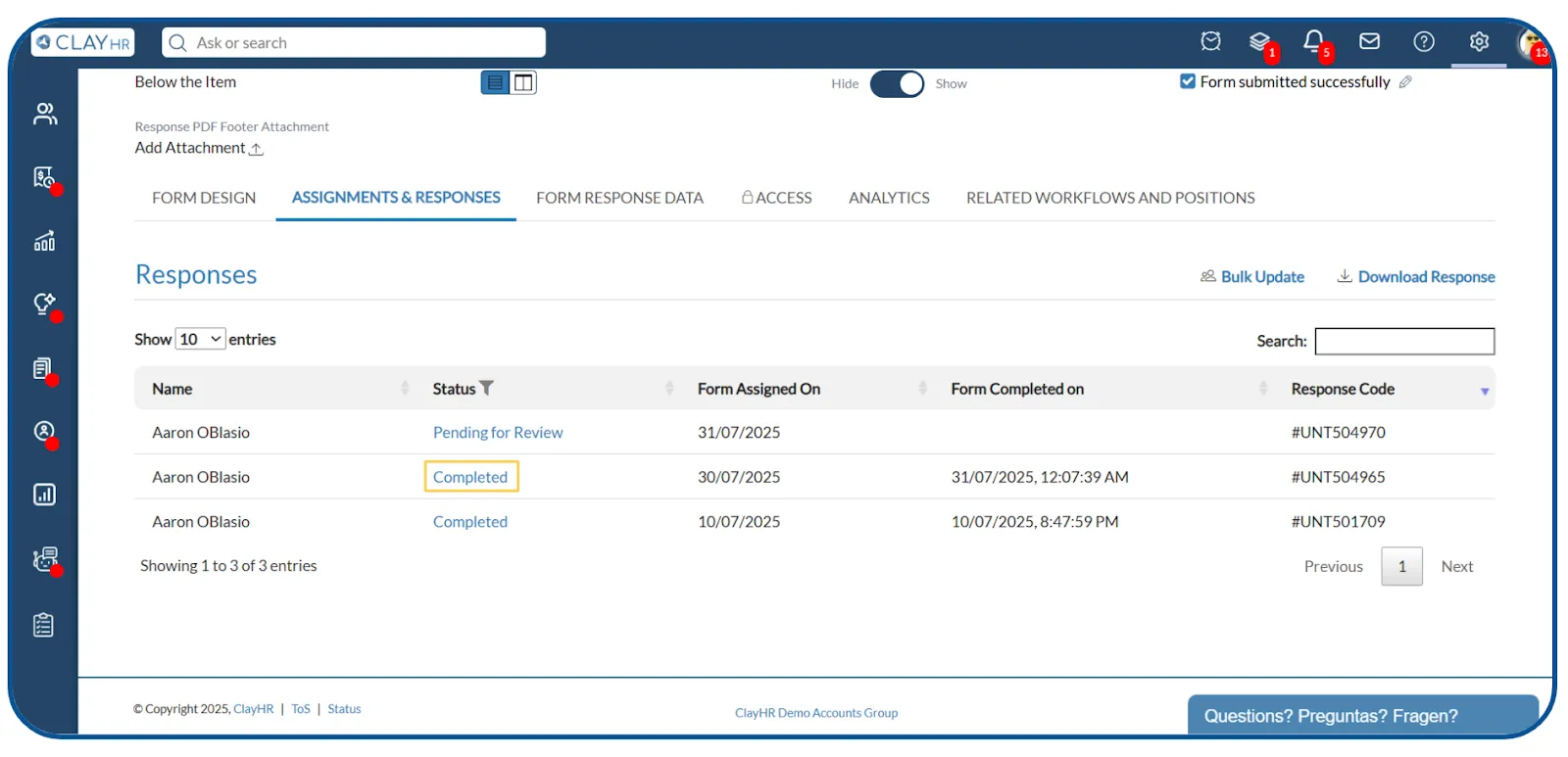 ClayHR allows admins and managers to easily download responses for any forms they manage. This makes it simple to review, store, and analyze form submissions efficiently.