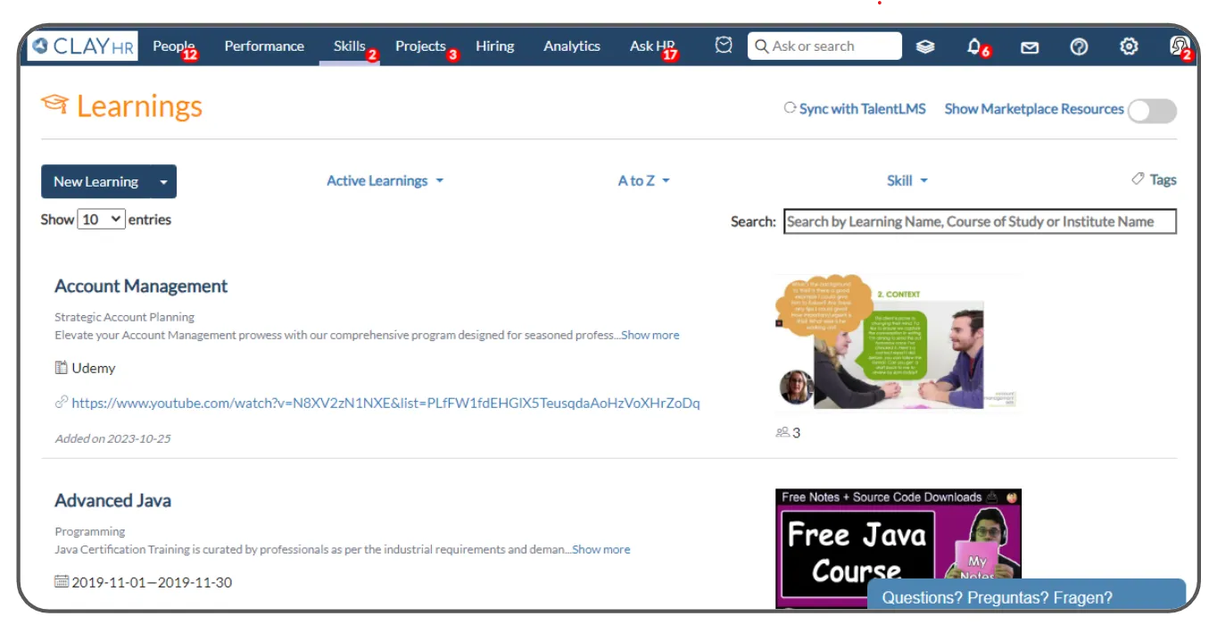 - Go to the “Skills” menu in the navigation bar and click on “Learnings”
