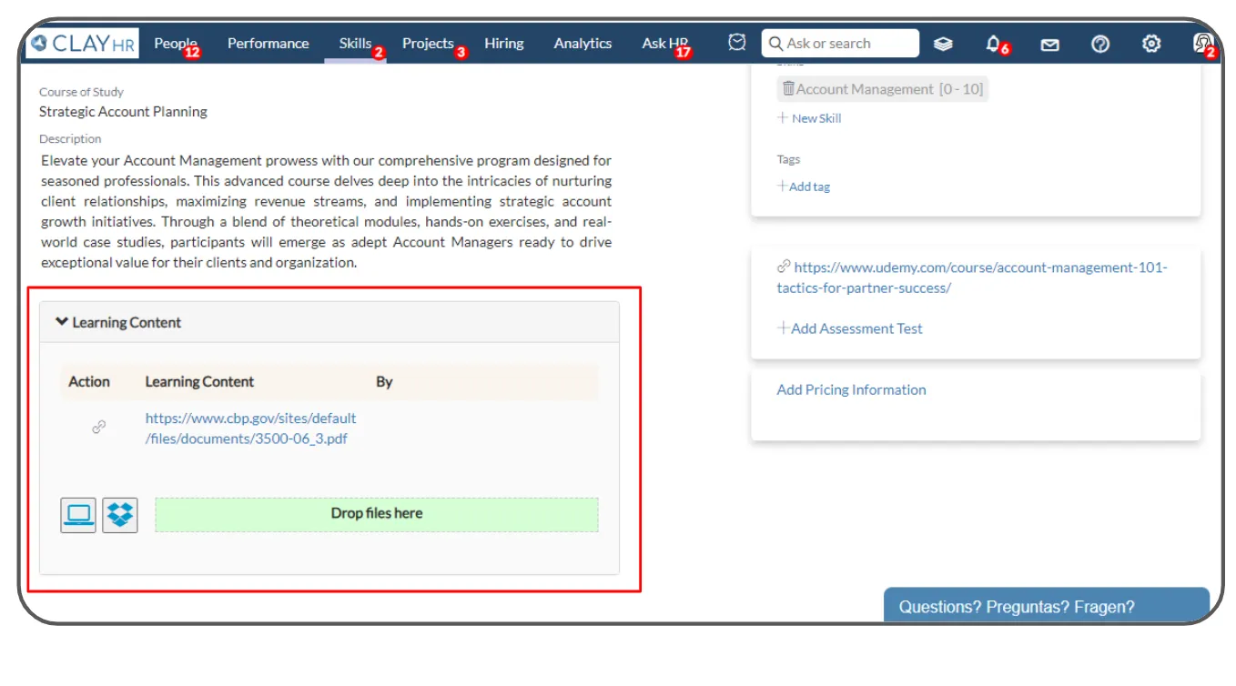 - In the “Learning Content” section upload the documents or media files. The questions will be generated based on the content.