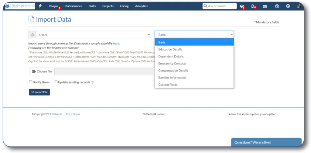 - On the next dropdown, select the basic details that you want to add in the case of users and candidates.