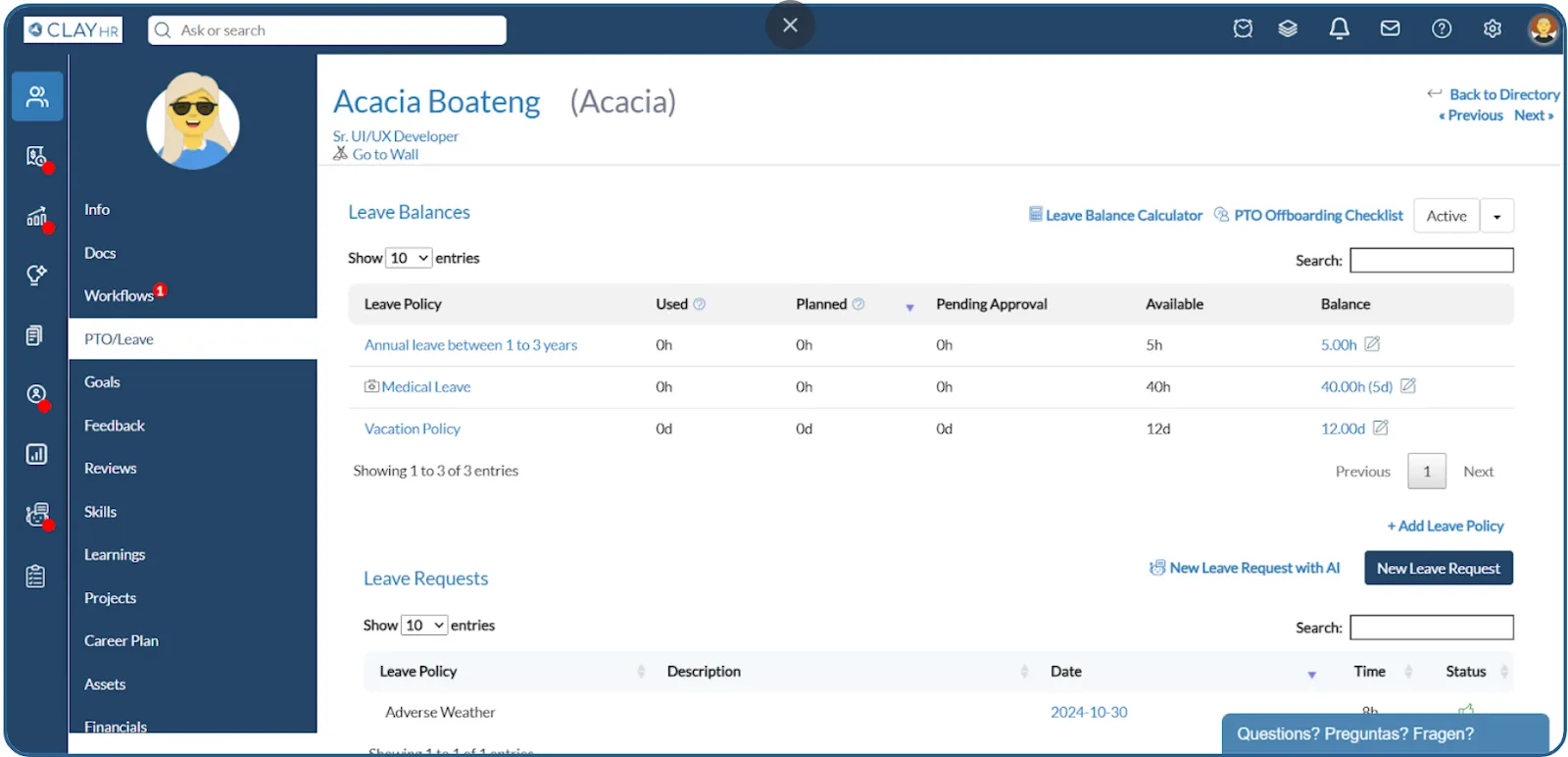 - The PTO Offboarding Checklist is auto-initiated once the End Date is set.