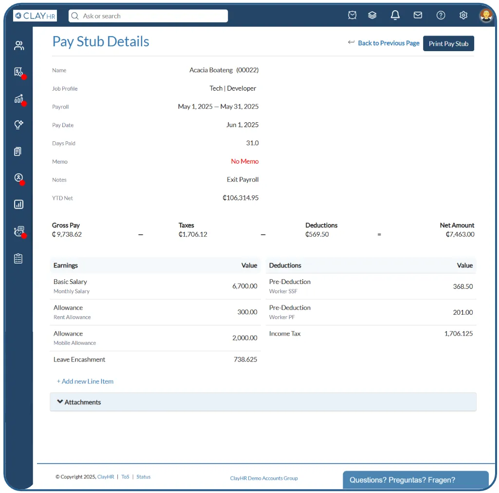ClayHR's payroll module simplifies the exit process by seamlessly managing final settlements, including pending dues, leave encashment, and other offboarding components. It integrates directly with the PTO, ensuring the accurate calculation of unused leaves and delivering a compliant, smooth, error-free exit payroll.