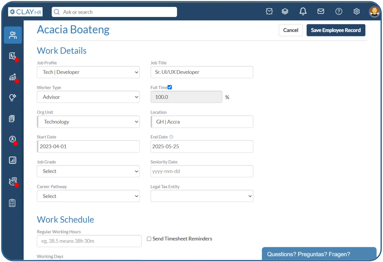 - Navigate to the User View page of the departing employee. Click ‘Edit Employee Record’.