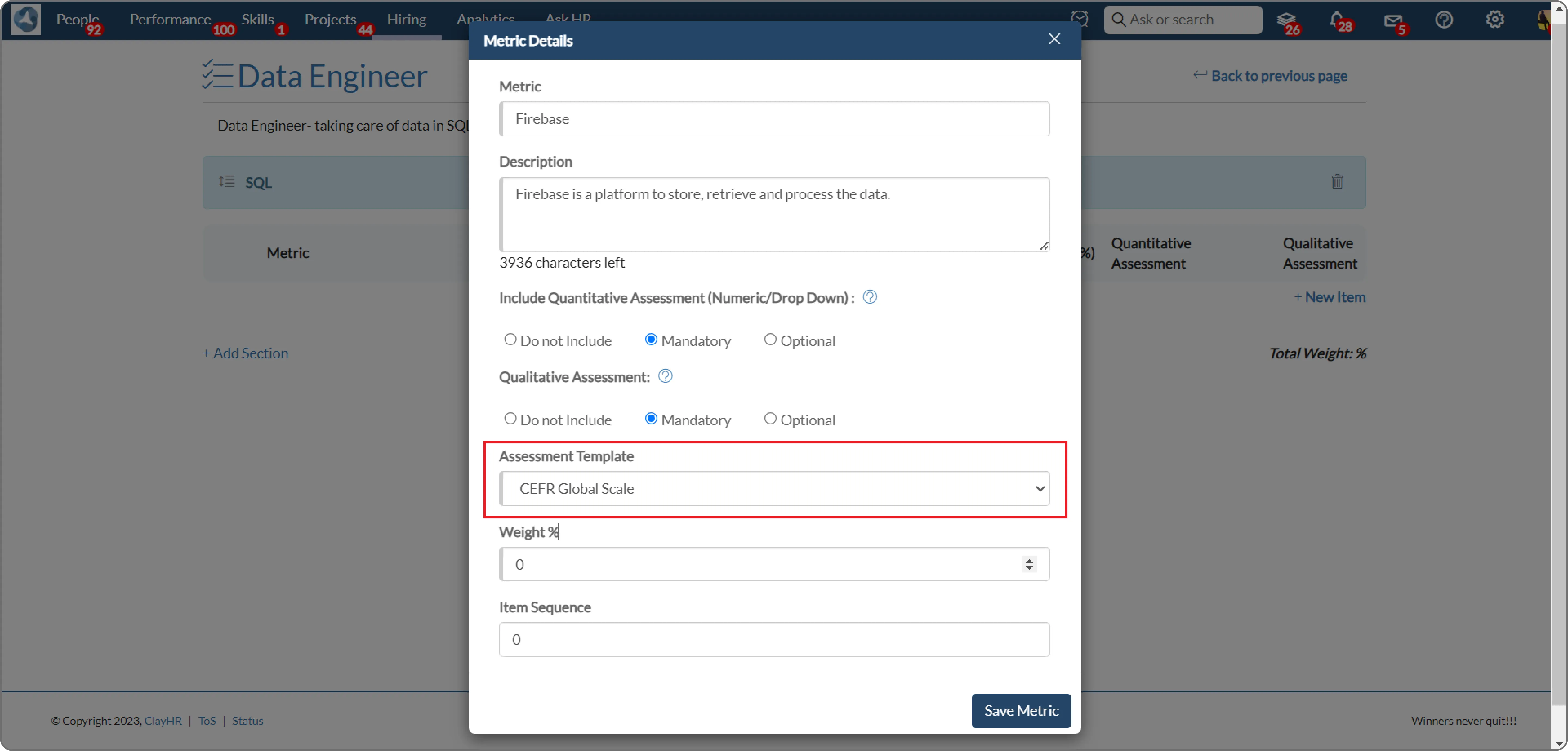 - When establishing a new position during the hiring process, it is essential to develop an assessment template. This template should include various sections and metrics, each of which necessitates an assessment scale. These scales are used to assess candidates based on the specified sections.