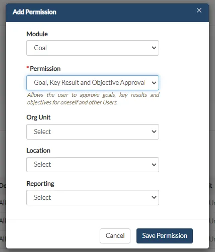 - If advanced permissions are in action, then the user will be restricted to approve only those goals which are for a specific department and location or reporting as described in the permission.