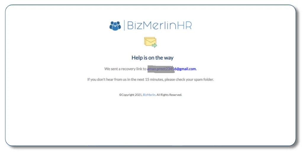 - Then, you see a message on the screen which asks you to check your email inbox. Refer below image.
