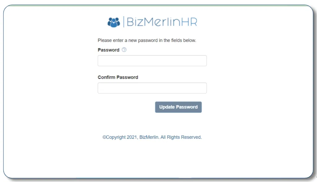- When you click “here”, you are taken to a page in which you create your new password. Please enter the password in the 2 fields. Refer below image. After entering the password in these two fields, please click on the “Update Password” button.