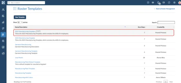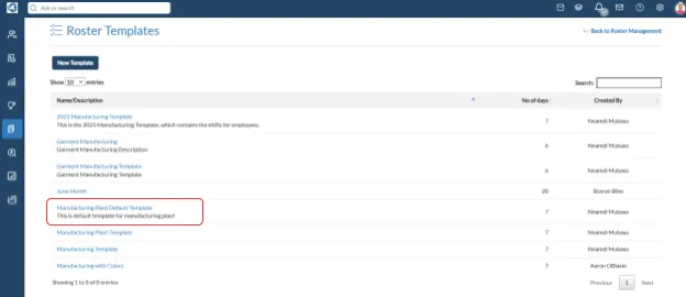 - A list of all the saved roster templates will appear on the Roster Templates home page.