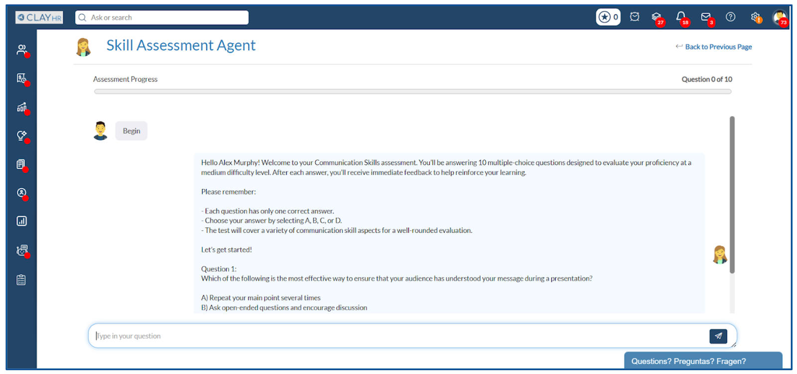 5. To initiate the Skill Assessment Agent, the user needs to type “Begin” or “Start.”