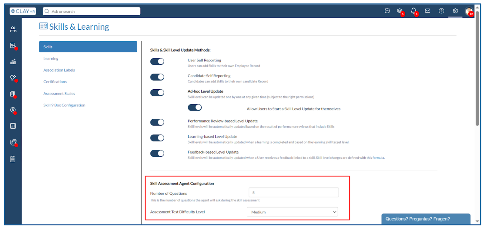 2. Specify the number of questions and the difficulty level for the Skill Assessment Agent.