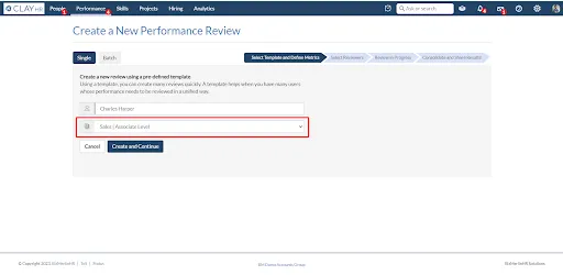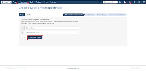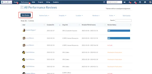 ClayHR le permite iniciar revisiones de rendimiento para (1) usuarios individuales o 2) en lote.