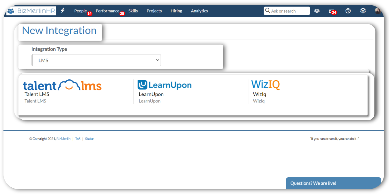 - Click on “New Integration” and select “LMS” as the Integration Type.