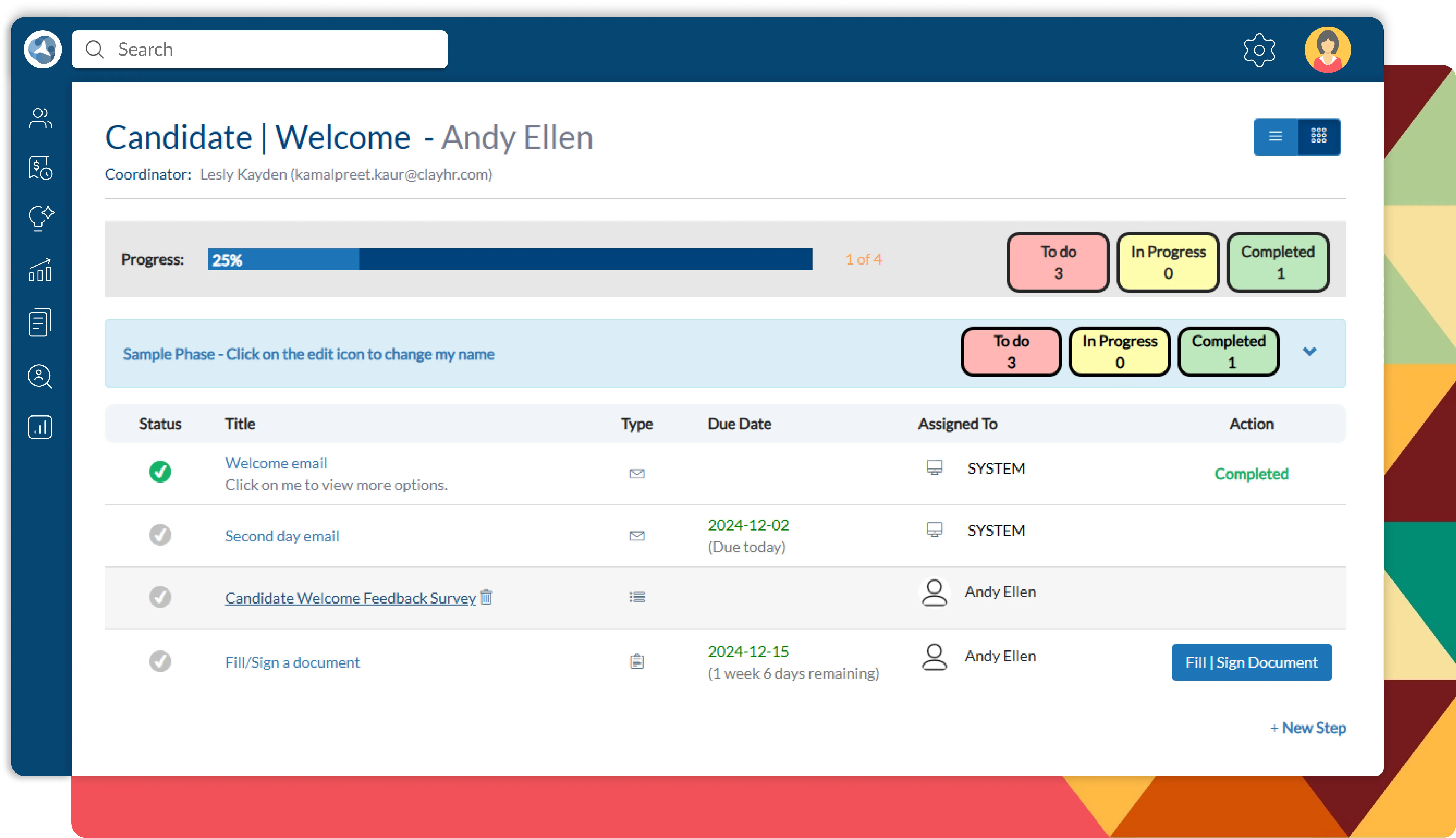 With ClayHR, tracking the progress of new hires has never been easier. Monitor every stage of the onboarding process to ensure employees stay on track and feel supported. Detailed insights allow you to identify areas for improvement and provide timely feedback, boosting engagement and ensuring a smoother transition into their roles.