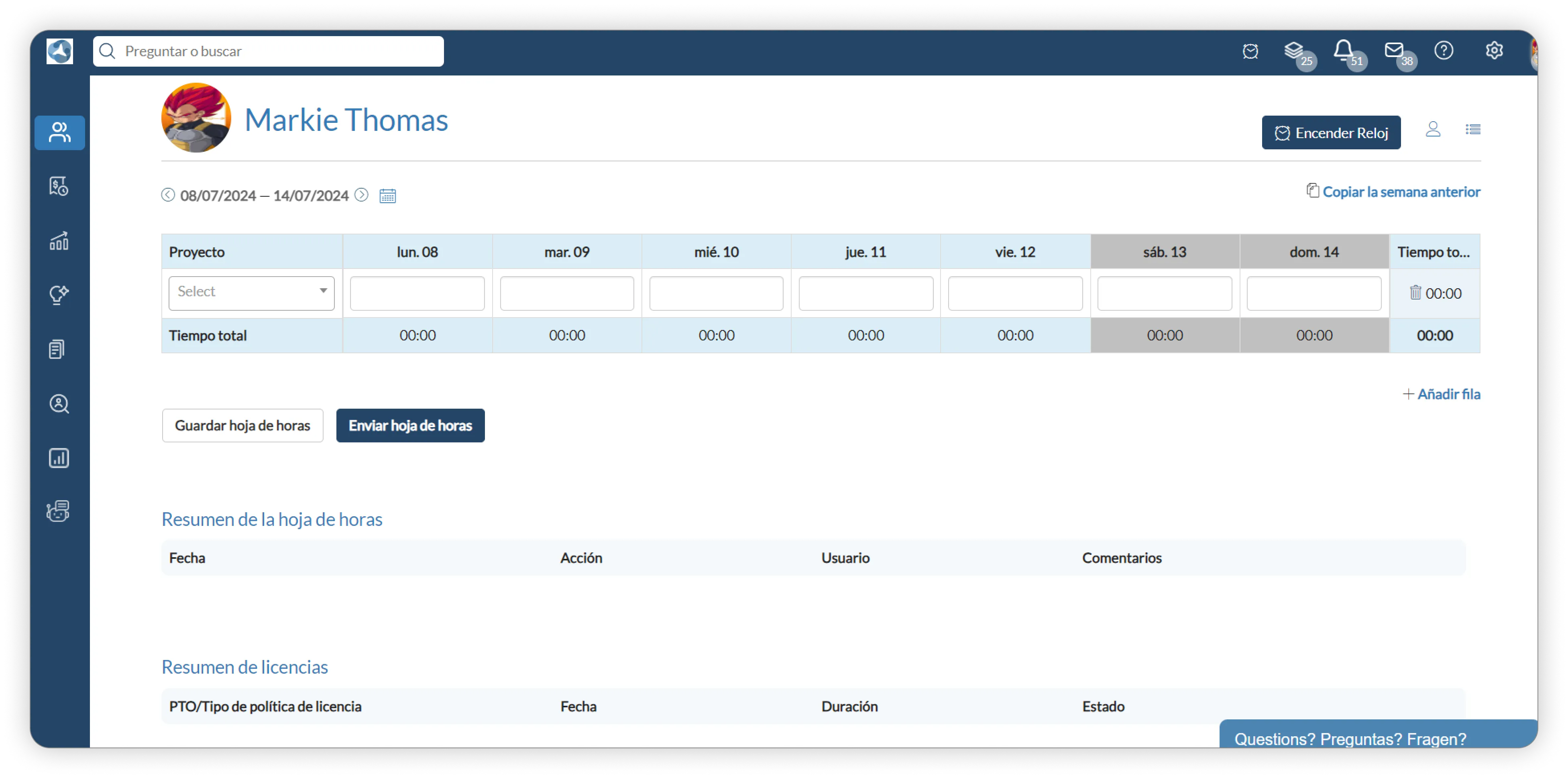 Realice un seguimiento de la asistencia de su equipo y registre fácilmente su control de horas en proyectos específicos, incluyendo las horas regulares y extras de trabajo, el tipo de actividad y cualquier detalle adicional.