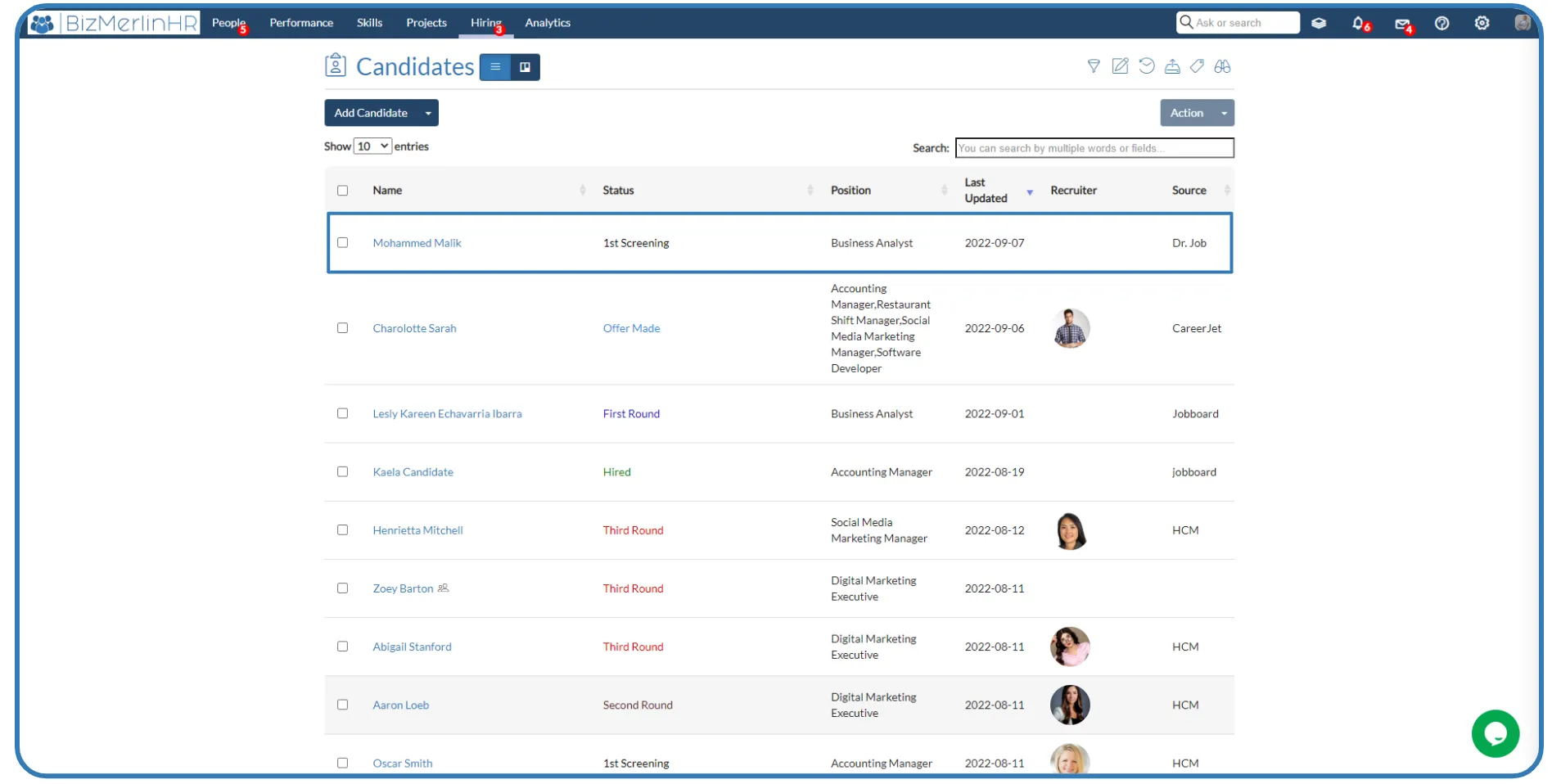 Candidates are present in many different job portals, and by automatically publishing your job positions to Dr.Job, you expand your reach and get more quality candidates. Every time a candidate submits an application through the Dr.job portal, a candidate record is automatically created in ClayHR along with complete details.