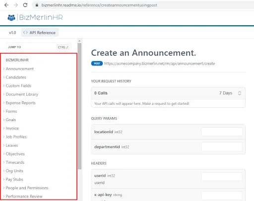 When you visit https://clayhr.readme.io you will see various API endpoints on the left panel of the page.