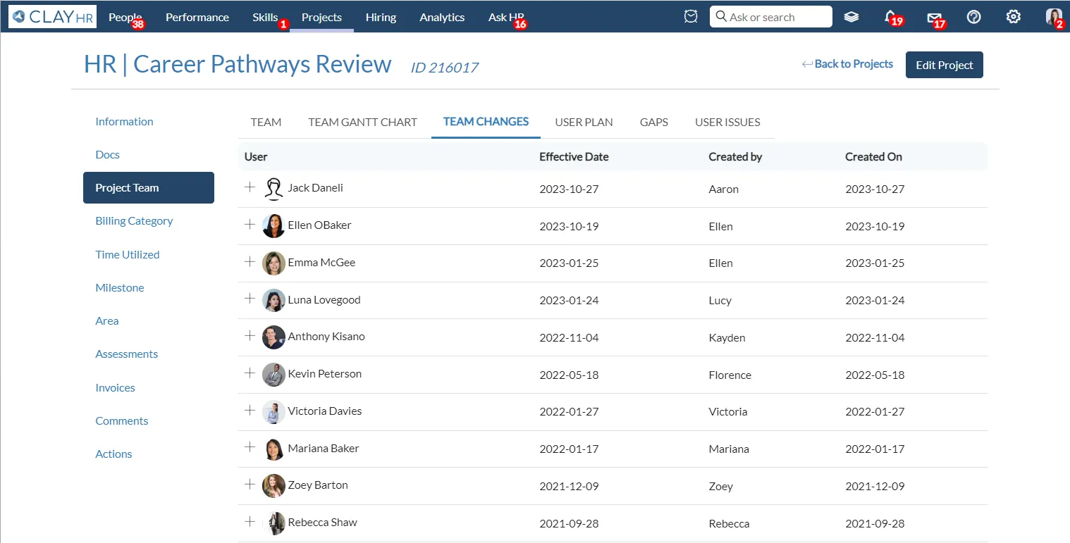 Monitor changes that occurred in the project with ease. An intelligible view of team changes made in past such as creation of the team, addition, removal of team members, etc.
