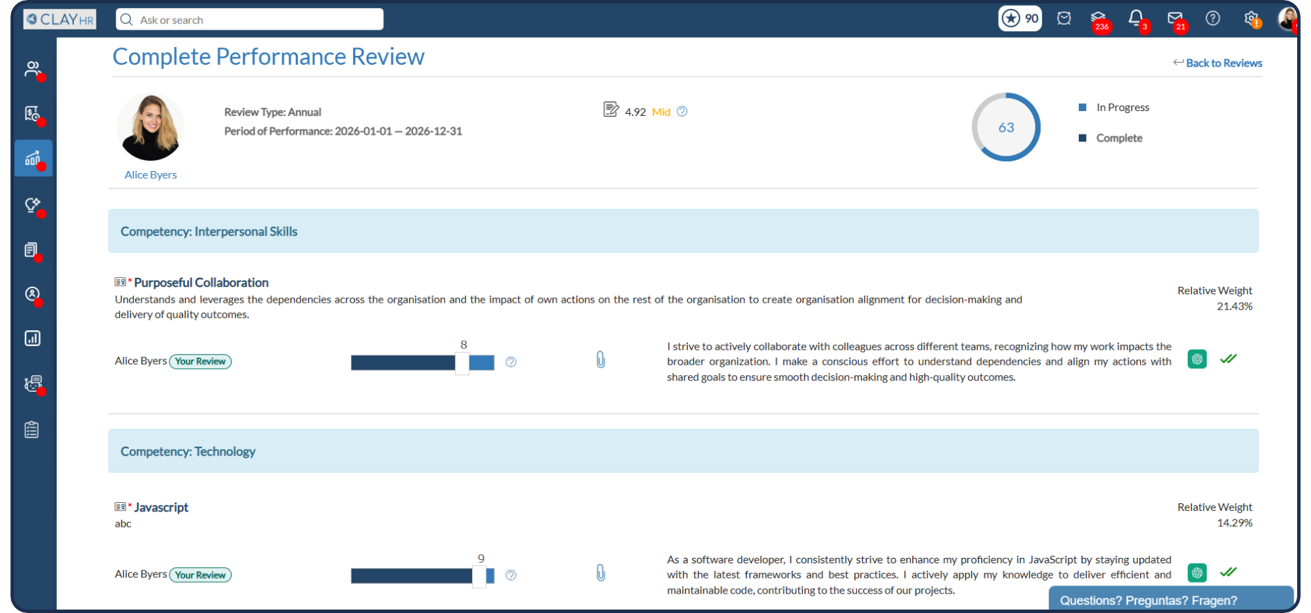 Performance reviews should confirm real capability. ClayHR automatically recalculates proficiency levels based on competency ratings, ensuring levels reflect demonstrated performance.