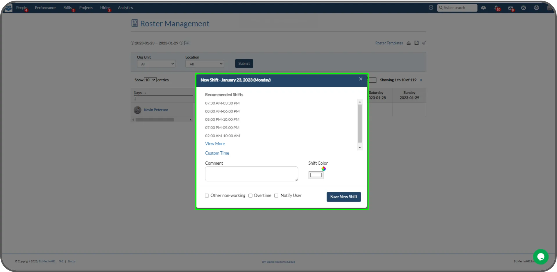 ClayHR’s shift allocation feature now includes color coding to make it even easier to see and manage your team’s schedule. With this new addition, you can quickly identify different shifts. For example, you can assign a specific color to a morning shift, another color to an evening shift, and so on. This will allow you to easily spot any conflicts or gaps in the schedule at a glance. Additionally, you can also use color coding to differentiate between different org units or locations within your organization. This added visual element makes it even simpler to manage and allocate shifts, ensuring your team is always properly scheduled and ready to work.