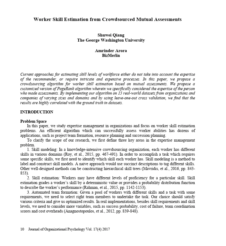 Worker Skill Estimation from Crowdsourced Mutual Assessments